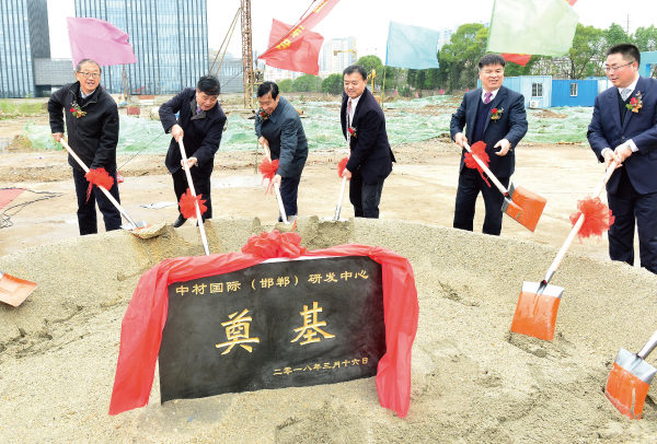 ▲▲▲領導嘉賓為中材國際(邯鄲)研發中心項目開工建設奠基培土
